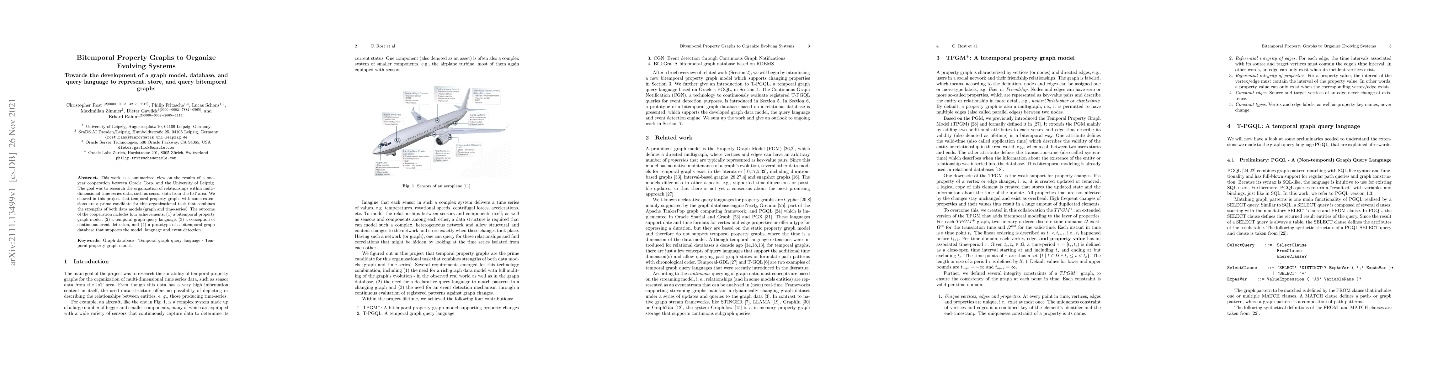 This work is a summarized view on the results of a one-year cooperation between Oracle Corp. and the University of Leipzig. The goal was to research the organization of relationships within multi-dimensional time-series data, such as sensor data from the IoT area. We showed in this project that temporal property graphs with some extensions are a prime candidate for this organizational task that combines the strengths of both data models (graph and time-series). The outcome of the cooperation includes four achievements: (1) a bitemporal property graph model, (2) a temporal graph query language, (3) a conception of continuous event detection, and (4) a prototype of a bitemporal graph database that supports the model, language and event detection.