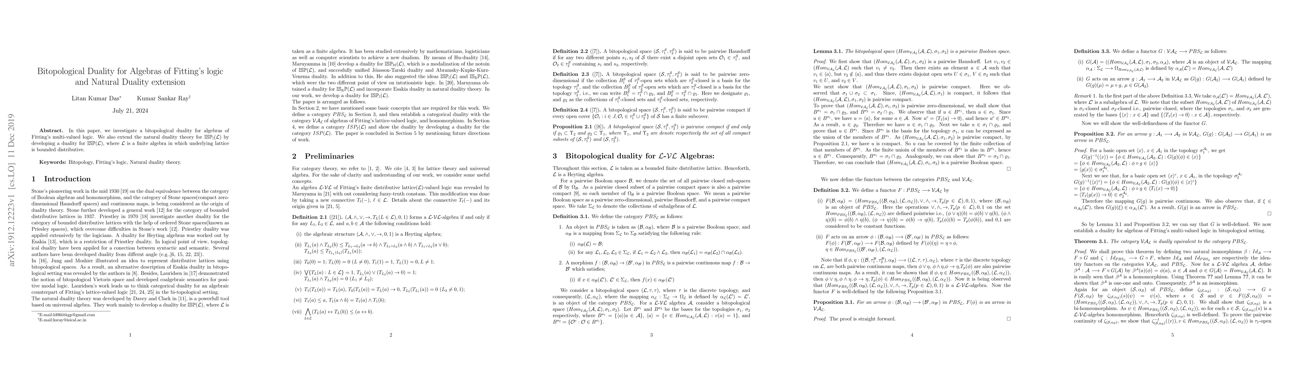 In this paper, we investigate a bitopological duality for algebras of Fitting's multi-valued logic. We also extend the natural duality theory for $\mathbb{ISP_I}(\mathcal{L})$ by developing a duality for $\mathbb{ISP}(\mathcal{L})$, where $\mathcal{L}$ is a finite algebra in which underlying lattice is bounded distributive.