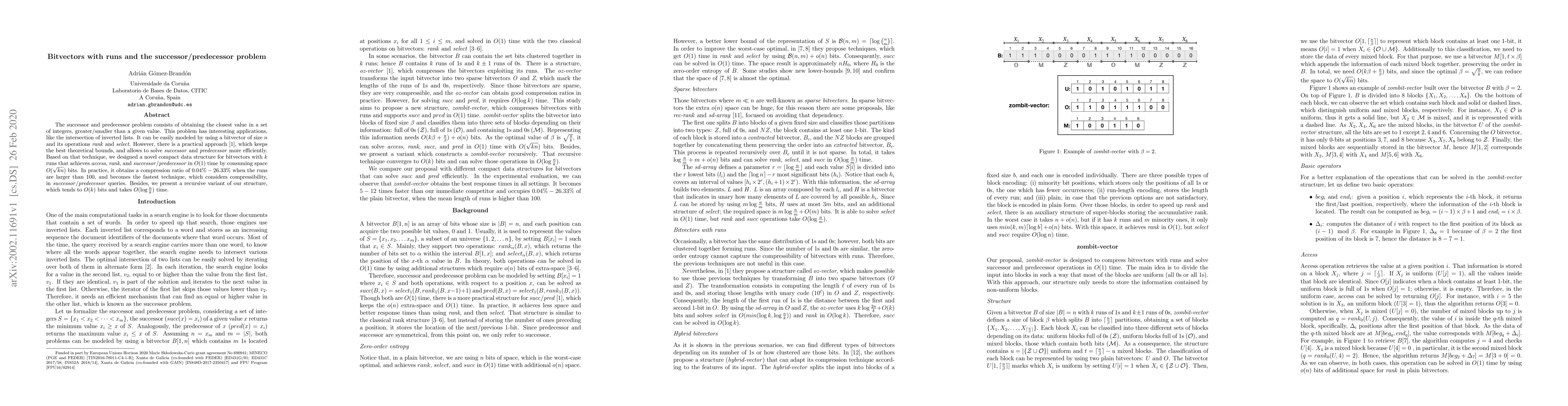 The successor and predecessor problem consists of obtaining the closest value in a set of integers, greater/smaller than a given value. This problem has interesting applications, like the intersection of inverted lists. It can be easily modeled by using a bitvector of size $n$ and its operations rank and select. However, there is a practical approach, which keeps the best theoretical bounds, and allows to solve successor and predecessor more efficiently. Based on that technique, we designed a novel compact data structure for bitvectors with $k$ runs that achieves access, rank, and successor/predecessor in $O(1)$ time by consuming space $O(\sqrt{kn})$ bits. In practice, it obtains a compression ratio of $0.04\%-26.33\%$ when the runs are larger than $100$, and becomes the fastest technique, which considers compressibility, in successor/predecessor queries. Besides, we present a recursive variant of our structure, which tends to $O(k)$ bits and takes $O(\log \frac{n}{k})$ time.