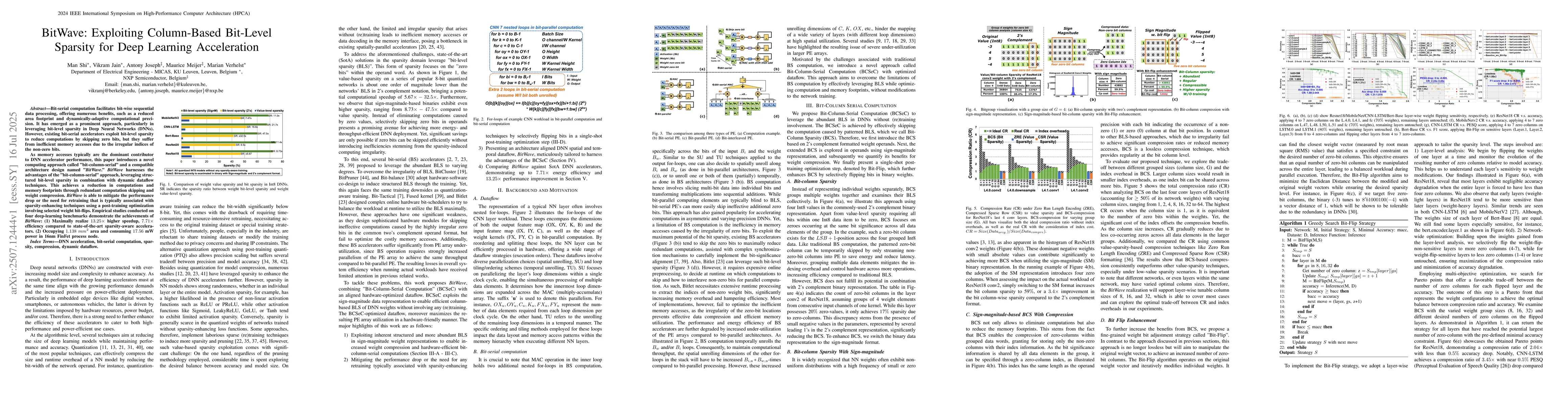 Bit-serial computation facilitates bit-wise sequential data processing, offering numerous benefits, such as a reduced area footprint and dynamically-adaptive computational precision. It has emerged as a prominent approach, particularly in leveraging bit-level sparsity in Deep Neural Networks (DNNs). However, existing bit-serial accelerators exploit bit-level sparsity to reduce computations by skipping zero bits, but they suffer from inefficient memory accesses due to the irregular indices of the non-zero bits. As memory accesses typically are the dominant contributor to DNN accelerator performance, this paper introduces a novel computing approach called "bit-column-serial" and a compatible architecture design named "BitWave." BitWave harnesses the advantages of the "bit-column-serial" approach, leveraging structured bit-level sparsity in combination with dynamic dataflow techniques. This achieves a reduction in computations and memory footprints through redundant computation skipping and weight compression. BitWave is able to mitigate the performance drop or the need for retraining that is typically associated with sparsity-enhancing techniques using a post-training optimization involving selected weight bit-flips. Empirical studies conducted on four deep-learning benchmarks demonstrate the achievements of BitWave: (1) Maximally realize 13.25x higher speedup, 7.71x efficiency compared to state-of-the-art sparsity-aware accelerators. (2) Occupying 1.138 mm2 area and consuming 17.56 mW power in 16nm FinFet process node.
