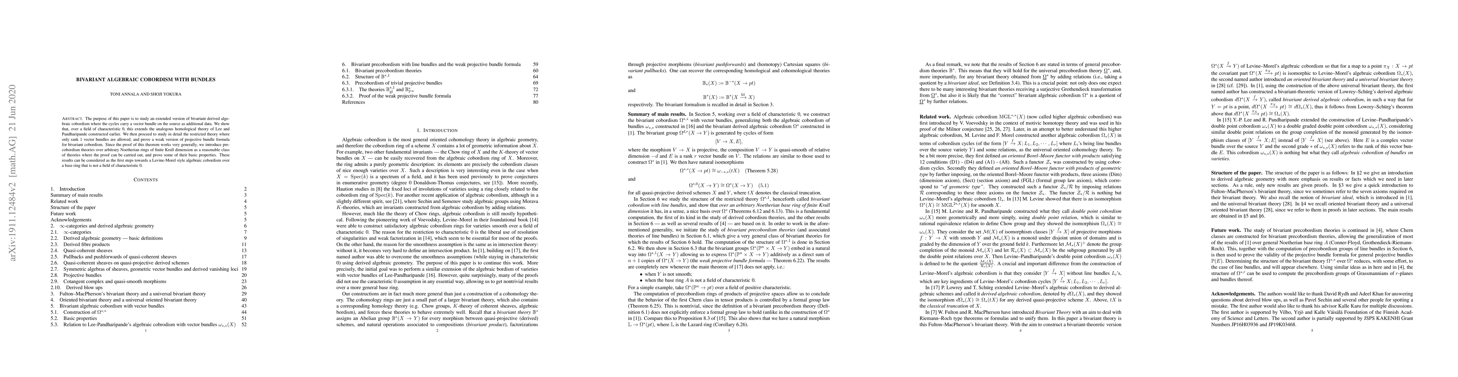 This paper extends bivariant derived algebraic cobordism to include vector bundles, showing its equivalence to a homological theory over fields of characteristic 0. It also develops a weak projective bundle formula for rank 1 bundles and explores precobordism theories over general Noetherian rings, laying groundwork for algebraic cobordism in non-characteristic 0 settings.