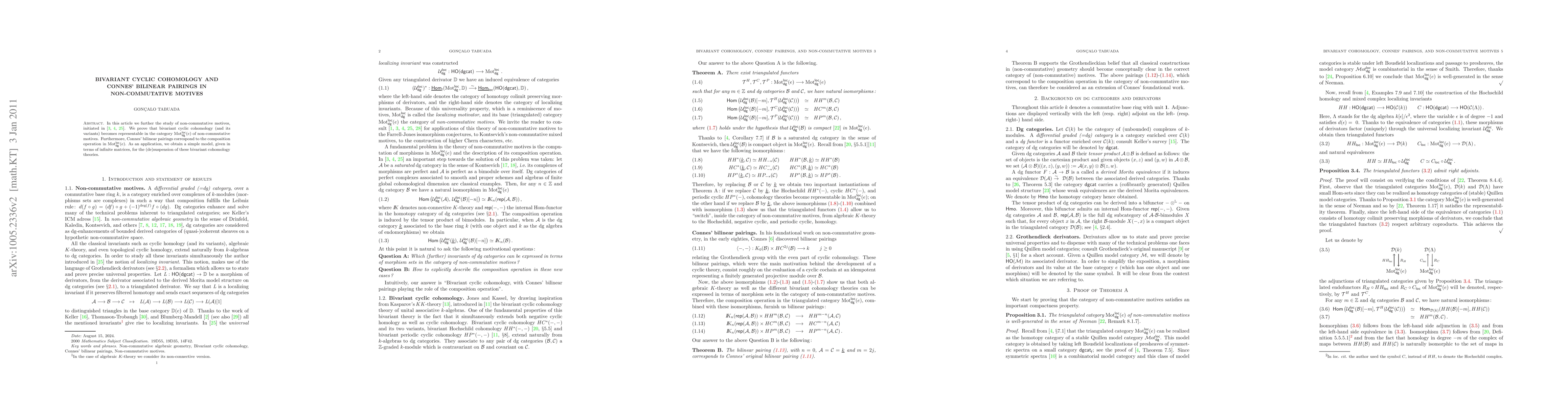 This paper establishes that bivariant cyclic cohomology can be represented in the category of non-commutative motives, linking Connes' bilinear pairings to the composition operation. It also provides a matrix-based model for the (de)suspension of these cohomology theories.