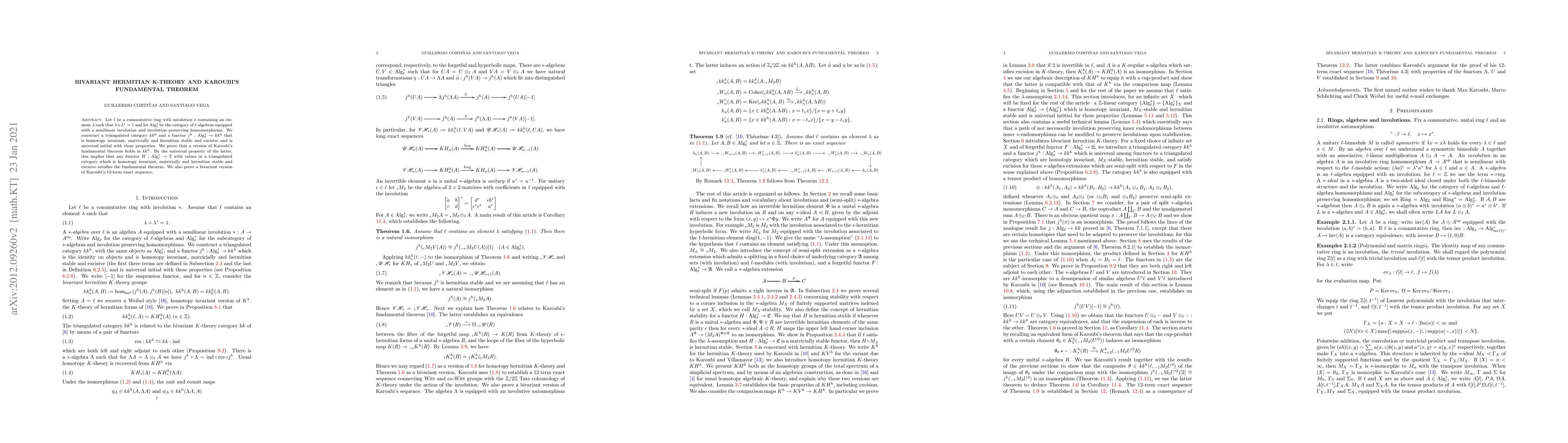 Let $\ell$ be a commutative ring with involution $*$ containing an element $\lambda$ such that $\lambda+\lambda^*=1$ and let $\operatorname{Alg}^*_\ell$ be the category of $\ell$-algebras equipped with a semilinear involution and involution preserving homomorphisms. We construct a triangulated category $kk^h$ and a functor $j^h:\operatorname{Alg}^*_\ell\to kk^h$ that is homotopy invariant, matricially and hermitian stable and excisive and is universal initial with these properties. We prove that a version of Karoubi's fundamental theorem holds in $kk^h$. By the universal property of the latter, this implies that any functor $H:\operatorname{Alg}^*_\ell\to\mathfrak{T}$ with values in a triangulated category which is homotopy invariant, matricially and hermitian stable and excisive satisfies the fundamental theorem. We also prove a bivariant version of Karoubi's $12$-term exact sequence.
