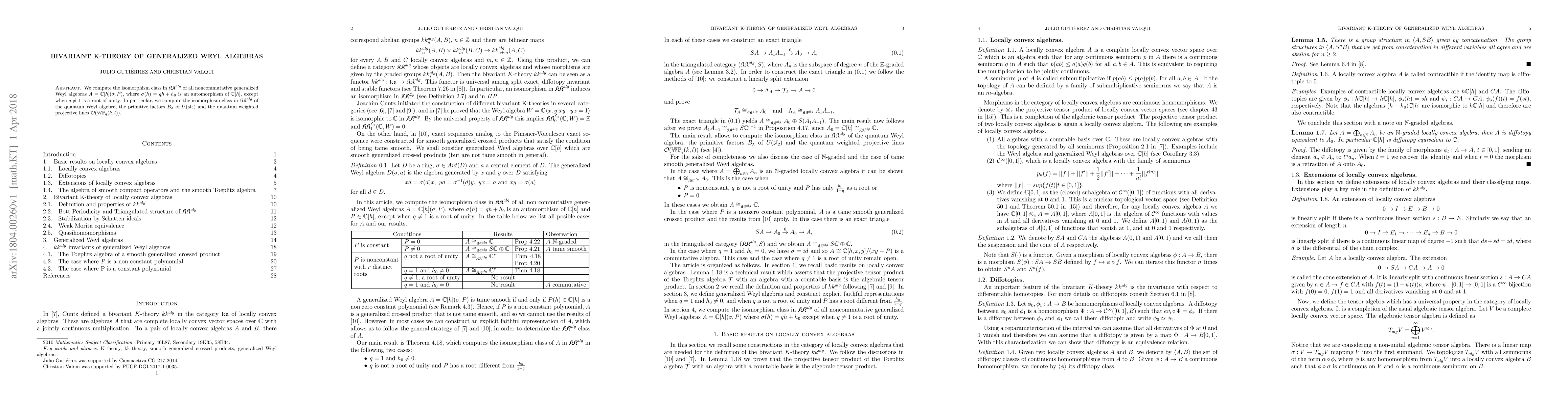 We compute the isomorphism class in $\mathfrak{KK}^{alg}$ of all noncommutative generalized Weyl algebras $A=\CC[h](\sigma, P)$, where $\sigma(h)=qh+h_0$ is an automorphism of $\CC[h]$, except when $q\neq 1$ is a root of unity. In particular, we compute the isomorphism class in $\mathfrak{KK}^{alg}$ of the quantum Weyl algebra, the primitive factors $B_{\lambda}$ of $U(\mathfrak{sl}_2)$ and the quantum weighted projective lines $\mathcal{O}(\mathbb{WP}_q(k, l))$.