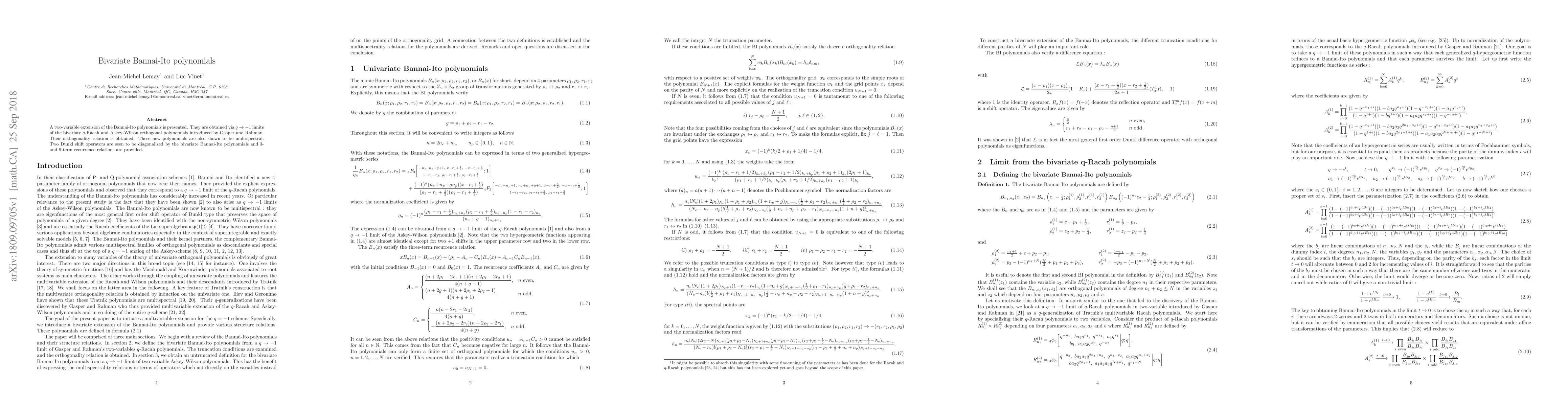 A two-variable extension of the Bannai-Ito polynomials is presented. They are obtained via $q\to-1$ limits of the bivariate $q$-Racah and Askey-Wilson orthogonal polynomials introduced by Gasper and Rahman. Their orthogonality relation is obtained. These new polynomials are also shown to be multispectral. Two Dunkl shift operators are seen to be diagonalized by the bivariate Bannai-Ito polynomials and 3- and 9-term recurrence relations are provided.