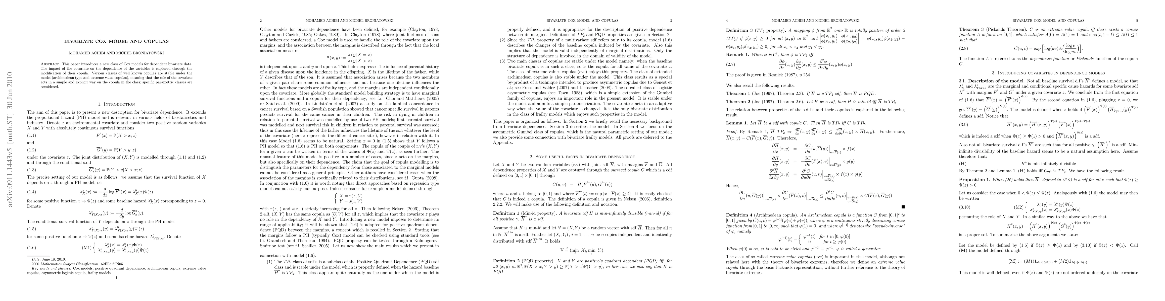 This paper proposes a novel Cox model for analyzing dependent bivariate data, where the covariate's influence on the dependence structure is modeled through copula modifications. It demonstrates that several well-known copula classes, including archimedean and extreme value types, remain stable under the proposed model, allowing for straightforward covariate effects on the copula.