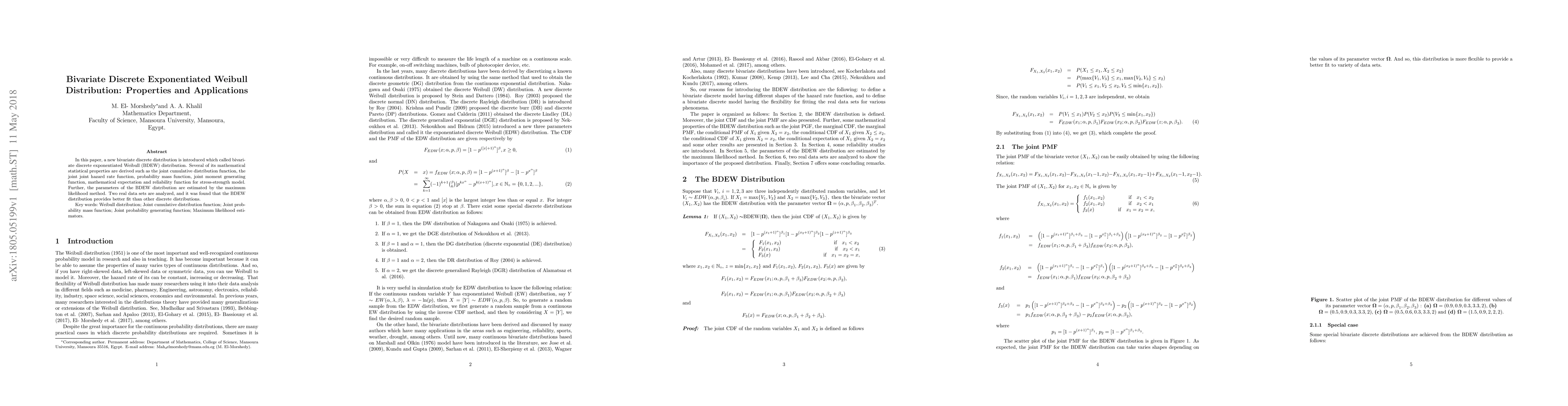 This paper introduces a new bivariate discrete exponentiated Weibull (BDEW) distribution, deriving its joint cumulative distribution function, hazard rate function, probability mass function, and other statistical properties. The BDEW distribution is estimated using maximum likelihood and shown to provide a better fit than other discrete distributions in real data analyses.