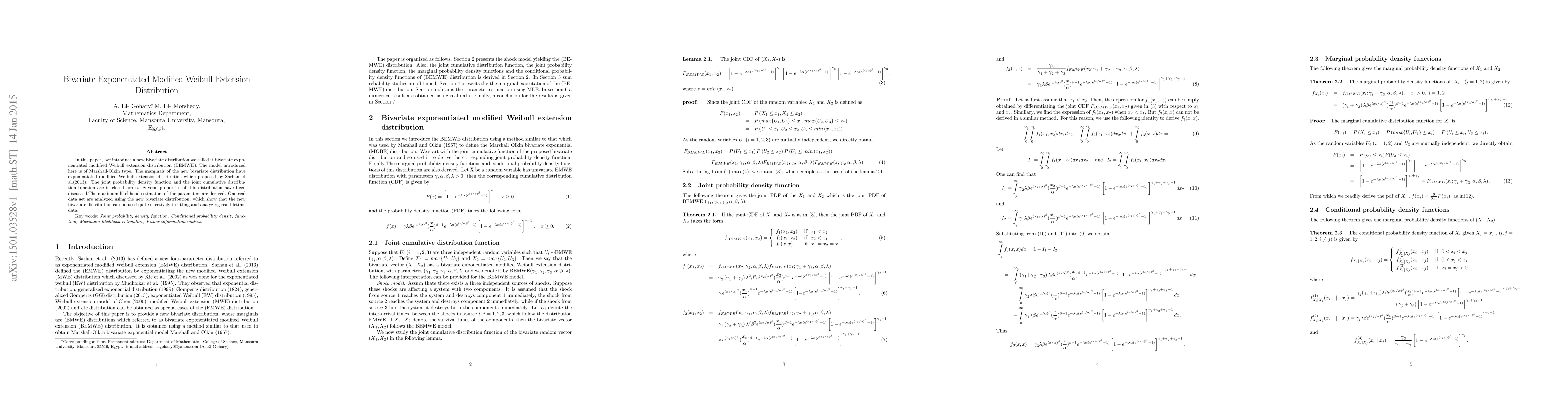 The development of a new bivariate distribution that combines elements of the exponentiated Weibullextension and modified Weibullextension distributions.