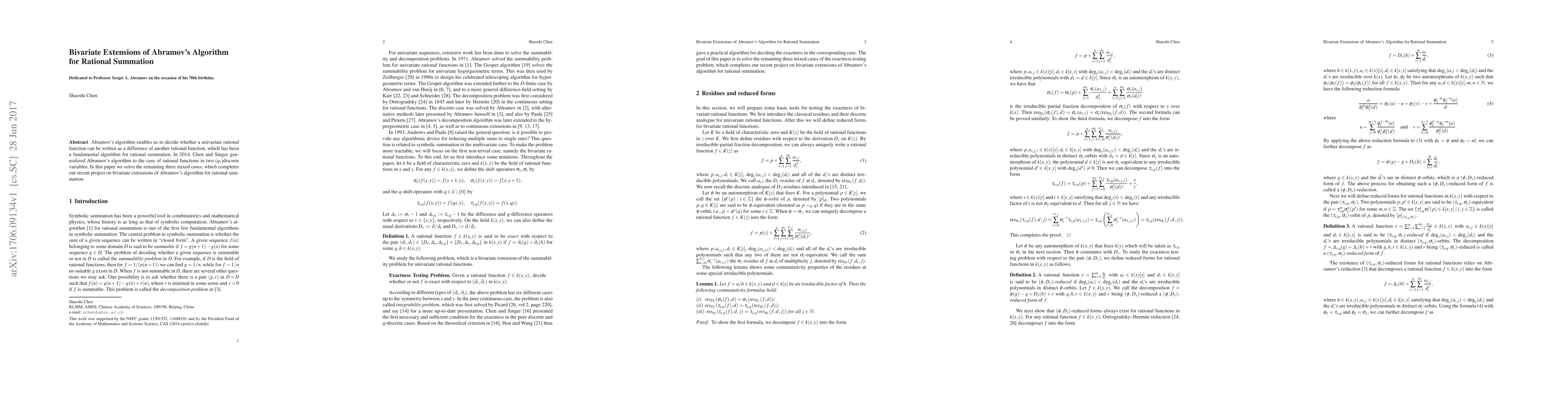 The findings focus on enabling the decision to express univariate rational functions as differences between other rational functions with two discrete variables.