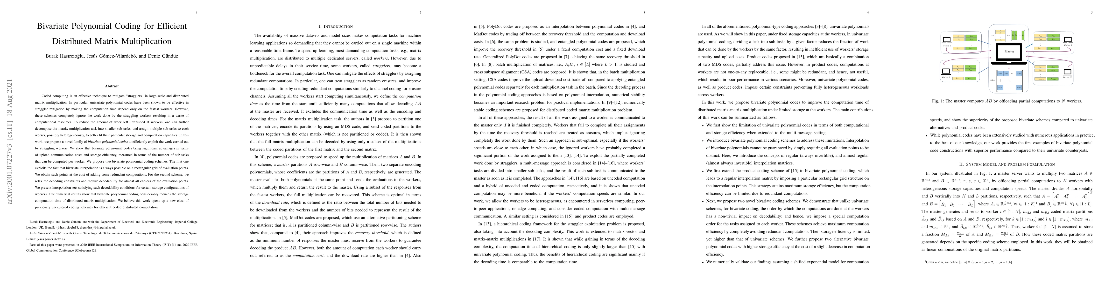 This paper proposes a novel family of bivariate polynomial codes for efficient distributed matrix multiplication, aiming to utilize the work of straggling workers and reduce computational waste. The authors introduce two coding schemes, demonstrating significant reductions in communication costs and storage efficiency, ultimately leading to faster distributed matrix multiplication.