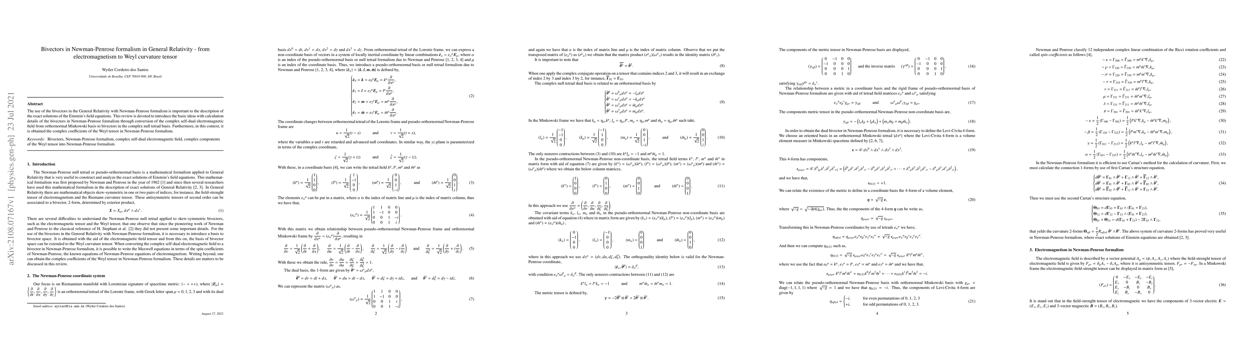 This paper reviews the use of bivectors in the Newman-Penrose formalism for describing exact solutions in General Relativity, detailing their conversion from electromagnetic fields in Minkowski to Weyl tensor coefficients in a complex null tetrad basis.