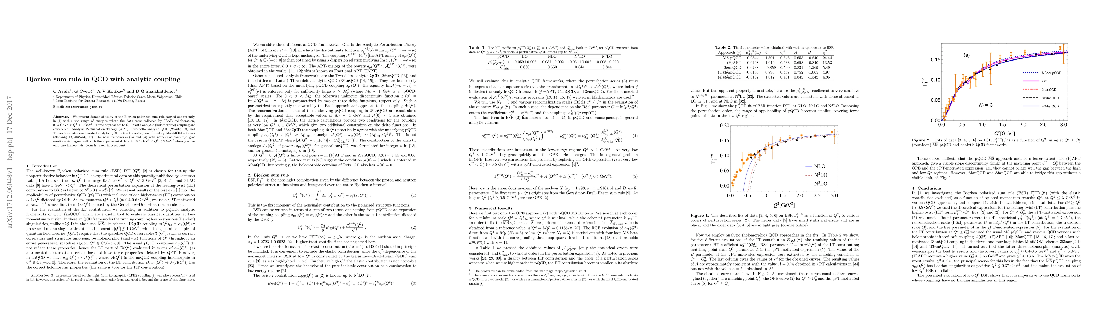 We present details of study of the Bjorken polarized sum rule carried out recently in [1] within the range of energies where the data were collected by JLAB collaboration, 0.05 GeV2 < Q2 < 3 GeV2. Three approaches to QCD with analytic (holomorphic) coupling are considered: Analytic Perturbation Theory (APT), Two-delta analytic QCD, and Three-delta lattice-motivated analytic QCD in the three-loop and four-loop MiniMOM schemes. The new frameworks with respective couplings give results which agree well with the experimental data for 0.5 GeV2 < Q2 < 3GeV2 already when only one higher-twist term is taken into account.