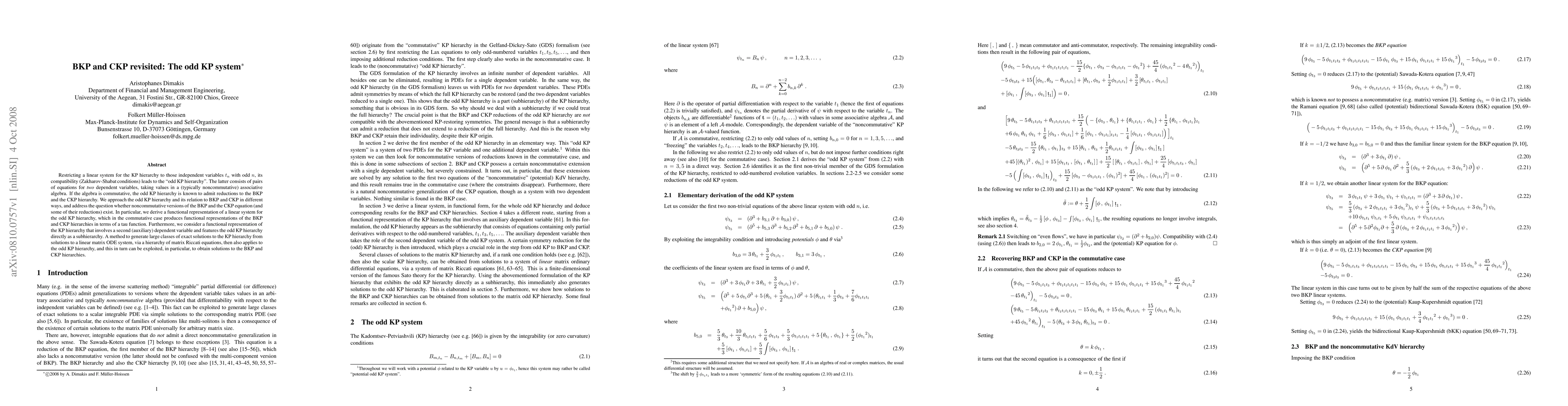 This paper revisits the odd KP hierarchy, a subsystem of the KP hierarchy involving odd-indexed variables, and explores its connections to the BKP and CKP hierarchies. It introduces functional representations for these hierarchies and discusses the existence of noncommutative versions of BKP and CKP equations, providing methods to generate exact solutions for the odd KP hierarchy and its associated systems.