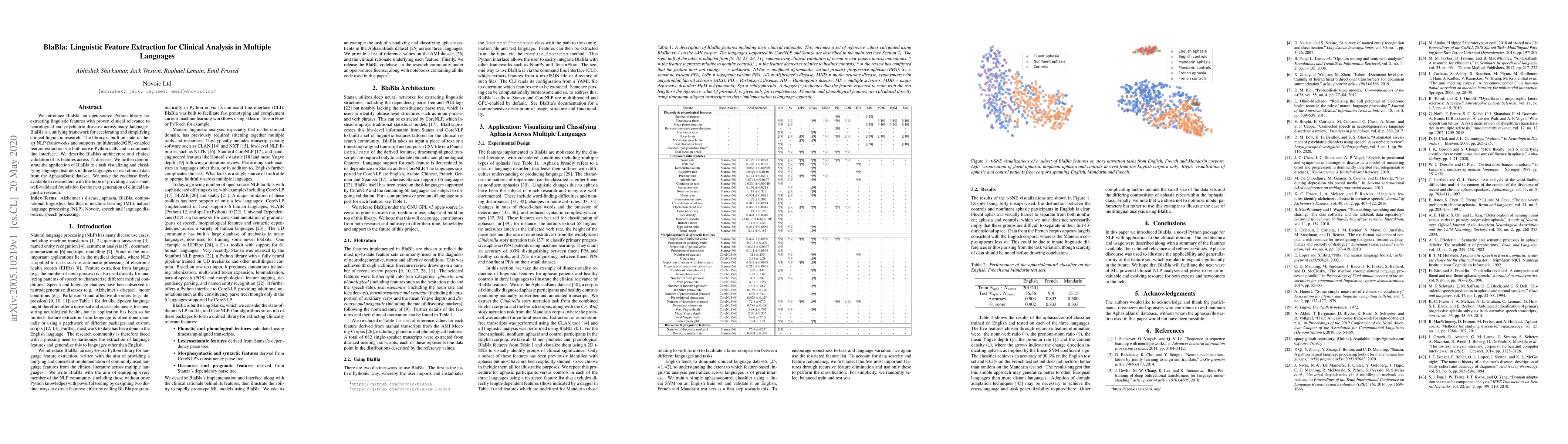 This open-source Python library, BlaBla, extracts linguistic features for clinical analysis in multiple languages to accelerate research on neurological and psychiatric diseases. Its clinical validation across 12 diseases provides a consistent foundation for future studies.