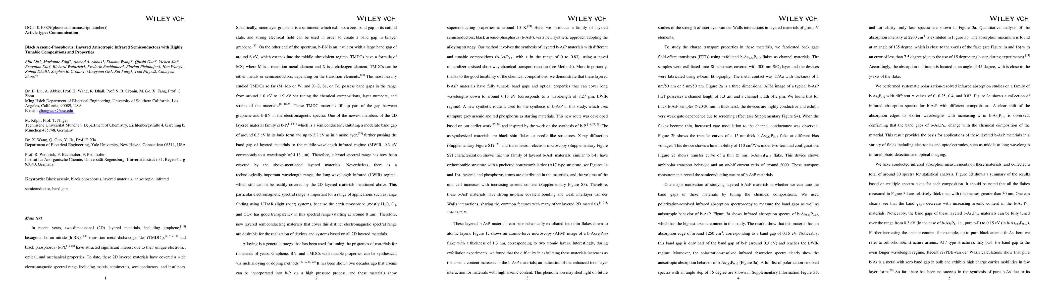 This paper introduces black arsenic-phosphorus (b-AsP), a new class of tunable layered anisotropic infrared semiconductors with bandgaps in the long-wavelength infrared regime, extending the electromagnetic spectrum of 2D materials and promising potential for future 2D device applications. The material's unique tunable properties and anisotropic behavior are demonstrated through transport and infrared absorption studies.
