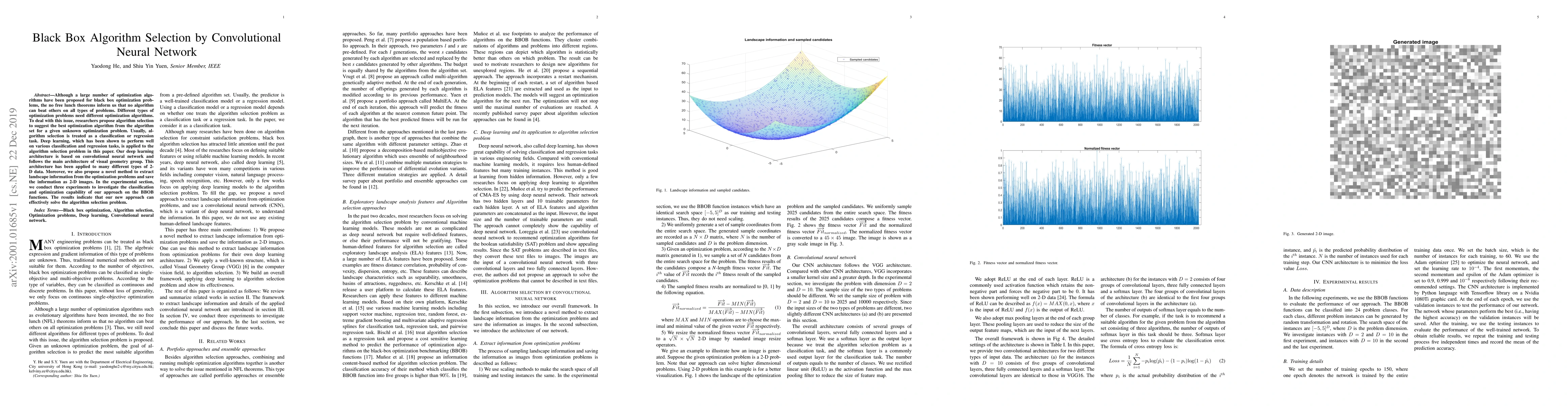 Although a large number of optimization algorithms have been proposed for black box optimization problems, the no free lunch theorems inform us that no algorithm can beat others on all types of problems. Different types of optimization problems need different optimization algorithms. To deal with this issue, researchers propose algorithm selection to suggest the best optimization algorithm from the algorithm set for a given unknown optimization problem. Usually, algorithm selection is treated as a classification or regression task. Deep learning, which has been shown to perform well on various classification and regression tasks, is applied to the algorithm selection problem in this paper. Our deep learning architecture is based on convolutional neural network and follows the main architecture of visual geometry group. This architecture has been applied to many different types of 2-D data. Moreover, we also propose a novel method to extract landscape information from the optimization problems and save the information as 2-D images. In the experimental section, we conduct three experiments to investigate the classification and optimization capability of our approach on the BBOB functions. The results indicate that our new approach can effectively solve the algorithm selection problem.