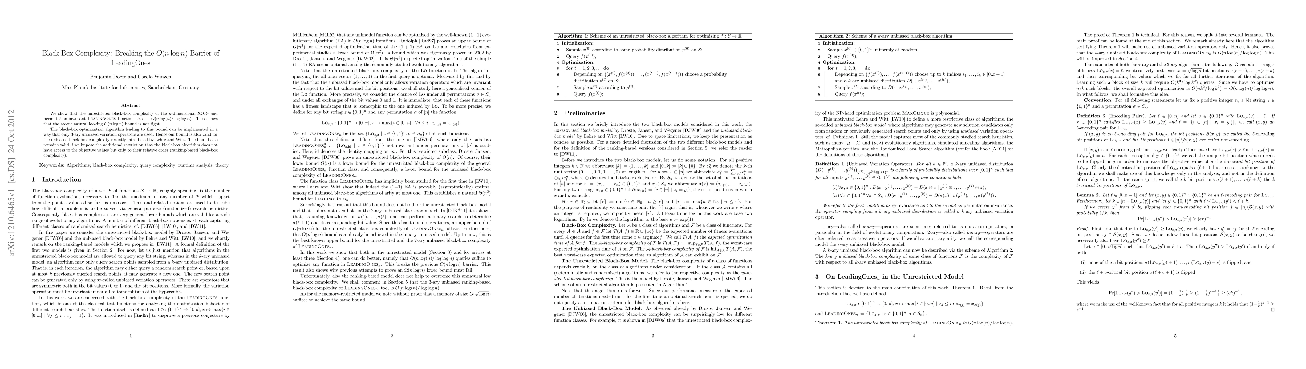 We show that the unrestricted black-box complexity of the $n$-dimensional XOR- and permutation-invariant LeadingOnes function class is $O(n \log (n) / \log \log n)$. This shows that the recent natural looking $O(n\log n)$ bound is not tight. The black-box optimization algorithm leading to this bound can be implemented in a way that only 3-ary unbiased variation operators are used. Hence our bound is also valid for the unbiased black-box complexity recently introduced by Lehre and Witt (GECCO 2010). The bound also remains valid if we impose the additional restriction that the black-box algorithm does not have access to the objective values but only to their relative order (ranking-based black-box complexity).