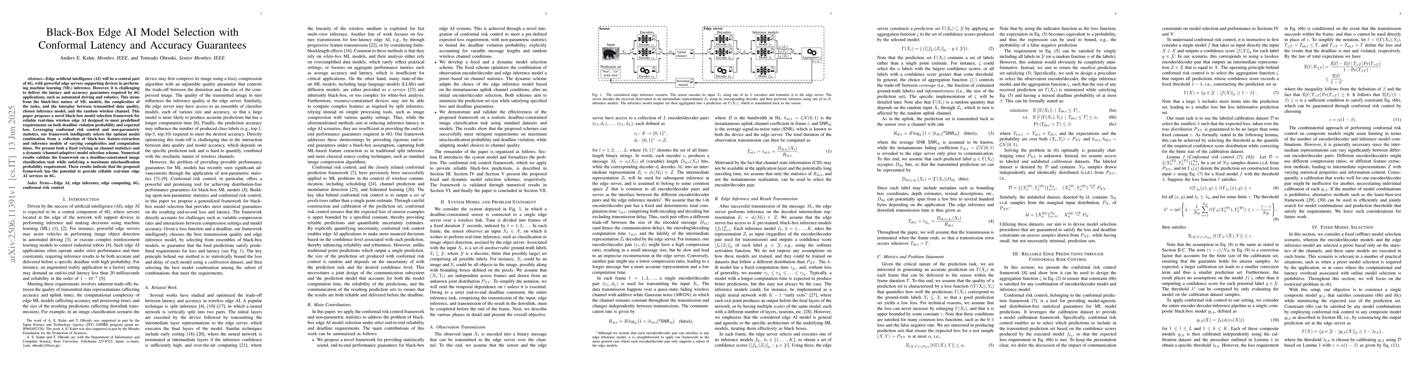 This paper introduces a black-box model selection framework for reliable real-time wireless edge AI, addressing 6G's latency and accuracy demands. Using conformal risk control and non-parametric statistics, it intelligently picks optimal model combinations for varying complexities and computation times, validated through numerical results on a deadline-constrained image classification task.