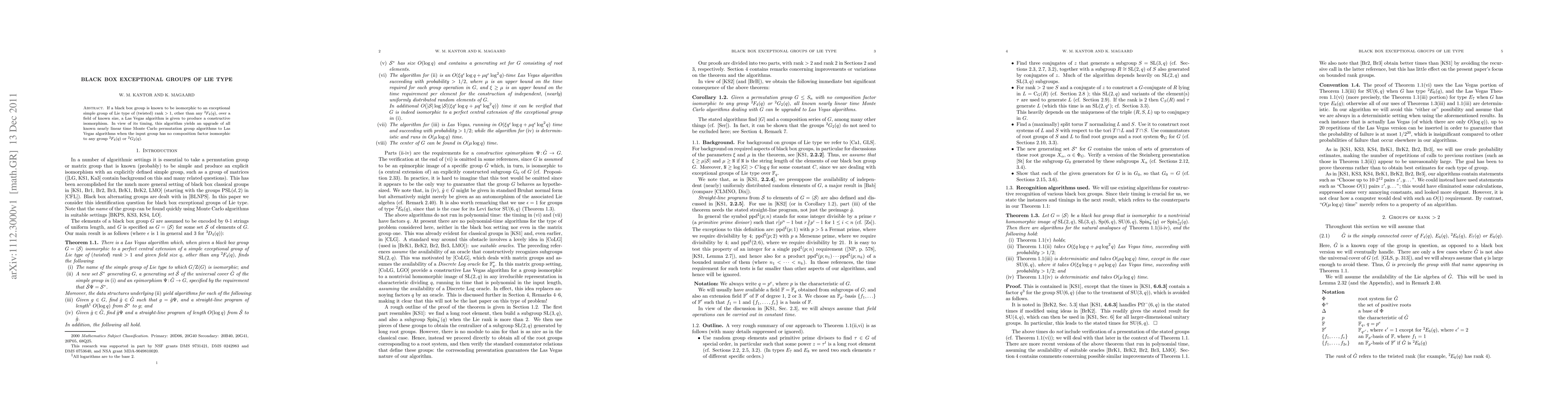 If a black box group is known to be isomorphic to an exceptional simple group of Lie type of (twisted) rank $>1$, other than any $^2F_4(q)$, over a field of known size, a Las Vegas algorithm is given to produce a constructive isomorphism. In view of its timing, this algorithm yields an upgrade of all known nearly linear time Monte Carlo permutation group algorithms to Las Vegas algorithms when the input group has no composition factor isomorphic to any group $^2F_4(q)$ or $^2G_2(q)$.