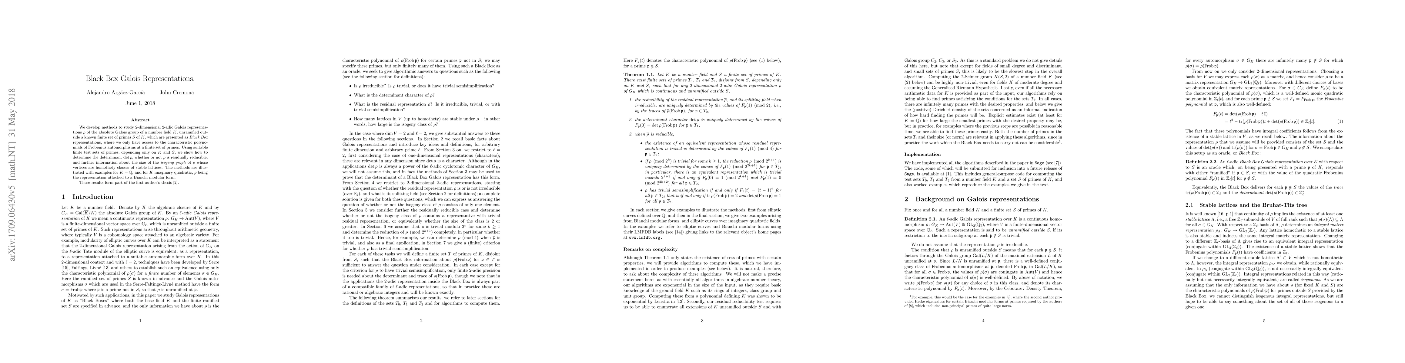 We develop methods to study $2$-dimensional $2$-adic Galois representations $\rho$ of the absolute Galois group of a number field $K$, unramified outside a known finite set of primes $S$ of $K$, which are presented as Black Box representations, where we only have access to the characteristic polynomials of Frobenius automorphisms at a finite set of primes. Using suitable finite test sets of primes, depending only on $K$ and $S$, we show how to determine the determinant $\det\rho$, whether or not $\rho$ is residually reducible, and further information about the size of the isogeny graph of $\rho$ whose vertices are homothety classes of stable lattices. The methods are illustrated with examples for $K=\mathbb{Q}$, and for $K$ imaginary quadratic, $\rho$ being the representation attached to a Bianchi modular form. These results form part of the first author's thesis.