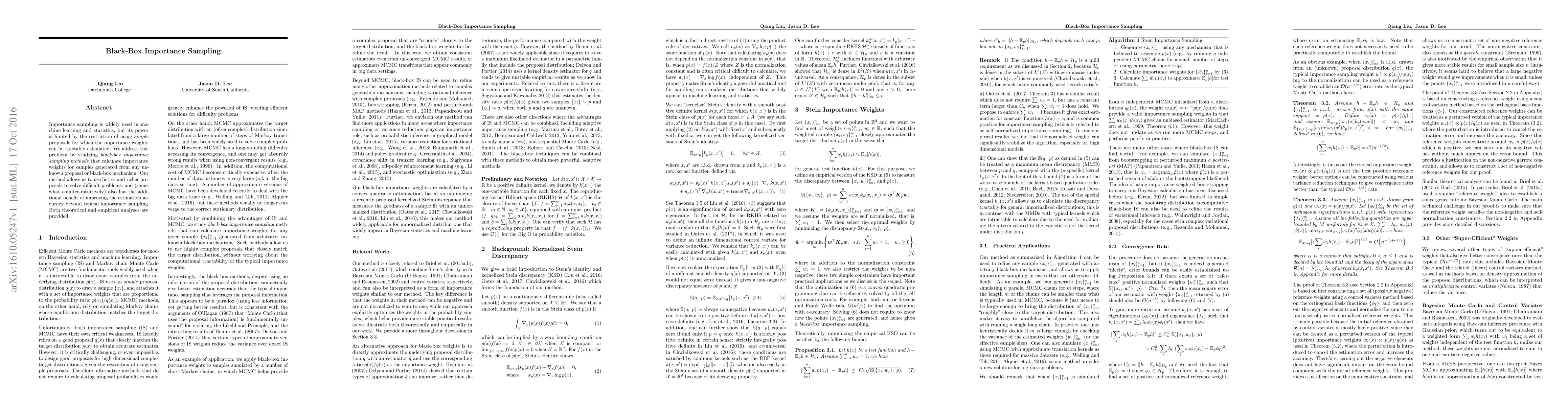 Black-box importance sampling enhances traditional importance sampling by calculating weights for samples from any unknown proposal, enabling richer proposals and improving estimation accuracy. Theoretical and empirical analyses show its effectiveness in solving complex problems.