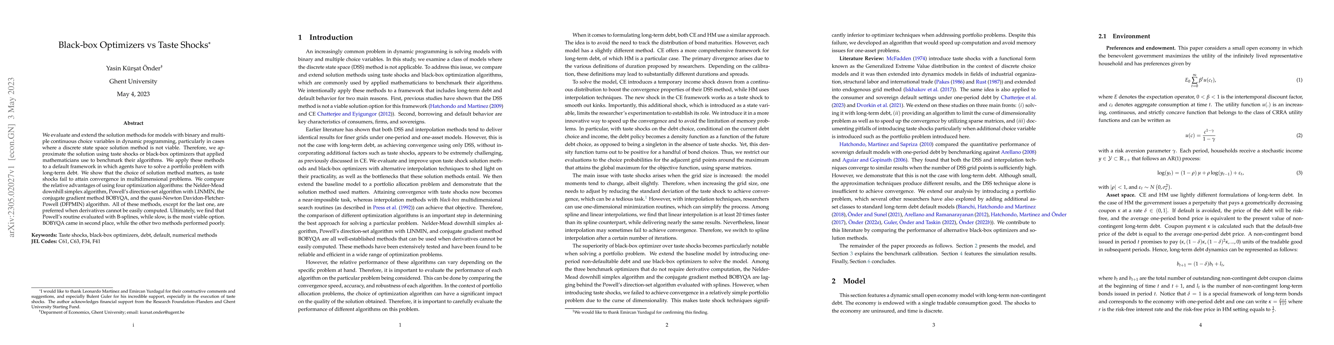 We evaluate and extend the solution methods for models with binary and multiple continuous choice variables in dynamic programming, particularly in cases where a discrete state space solution method is not viable. Therefore, we approximate the solution using taste shocks or black-box optimizers that applied mathematicians use to benchmark their algorithms. We apply these methods to a default framework in which agents have to solve a portfolio problem with long-term debt. We show that the choice of solution method matters, as taste shocks fail to attain convergence in multidimensional problems. We compare the relative advantages of using four optimization algorithms: the Nelder-Mead downhill simplex algorithm, Powell's direction-set algorithm with LINMIN, the conjugate gradient method BOBYQA, and the quasi-Newton Davidon-Fletcher-Powell (DFPMIN) algorithm. All of these methods, except for the last one, are preferred when derivatives cannot be easily computed. Ultimately, we find that Powell's routine evaluated with B-splines, while slow, is the most viable option. BOBYQA came in second place, while the other two methods performed poorly.