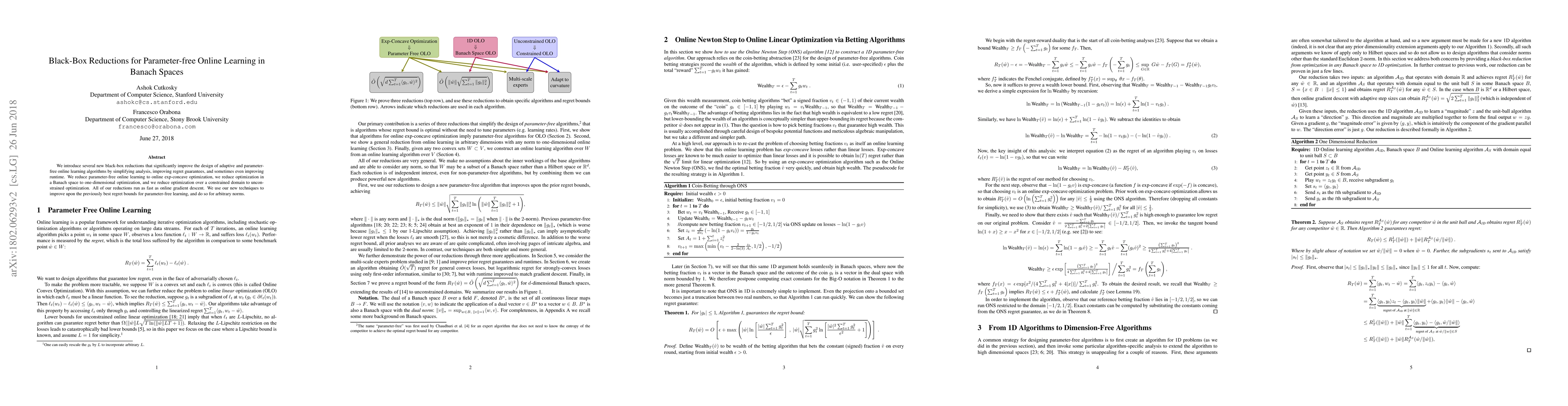We introduce several new black-box reductions that significantly improve the design of adaptive and parameter-free online learning algorithms by simplifying analysis, improving regret guarantees, and sometimes even improving runtime. We reduce parameter-free online learning to online exp-concave optimization, we reduce optimization in a Banach space to one-dimensional optimization, and we reduce optimization over a constrained domain to unconstrained optimization. All of our reductions run as fast as online gradient descent. We use our new techniques to improve upon the previously best regret bounds for parameter-free learning, and do so for arbitrary norms.