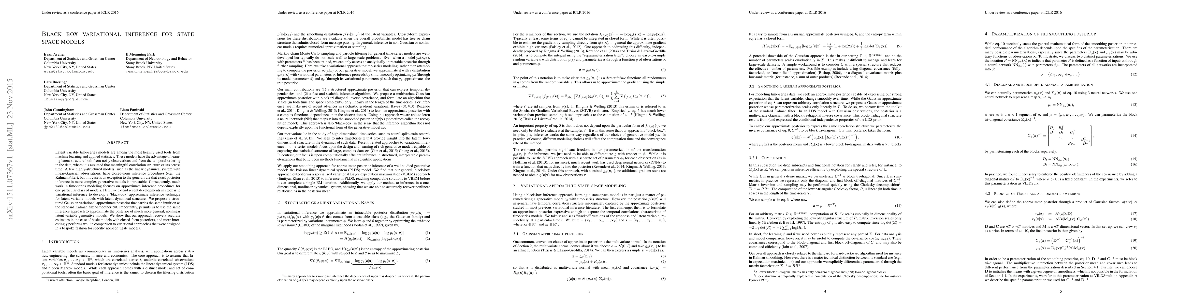 This paper introduces a "black-box" variational inference technique for latent variable time-series models, extending stochastic variational inference to handle complex, nonlinear models. The proposed method uses a structured Gaussian variational approximation that generalizes beyond linear-Gaussian models, achieving accurate posterior estimates across various model types.