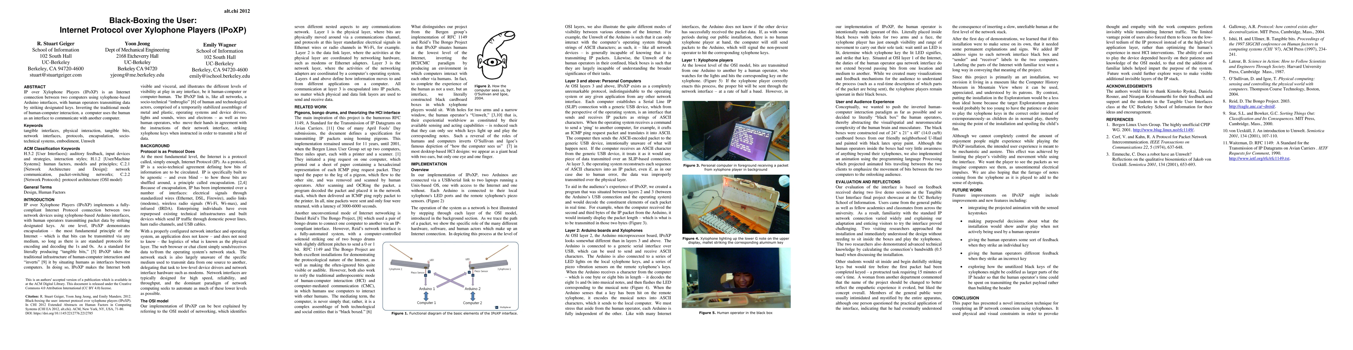 We introduce IP over Xylophone Players (IPoXP), a novel Internet protocol between two computers using xylophone-based Arduino interfaces. In our implementation, human operators are situated within the lowest layer of the network, transmitting data between computers by striking designated keys. We discuss how IPoXP inverts the traditional mode of human-computer interaction, with a computer using the human as an interface to communicate with another computer.