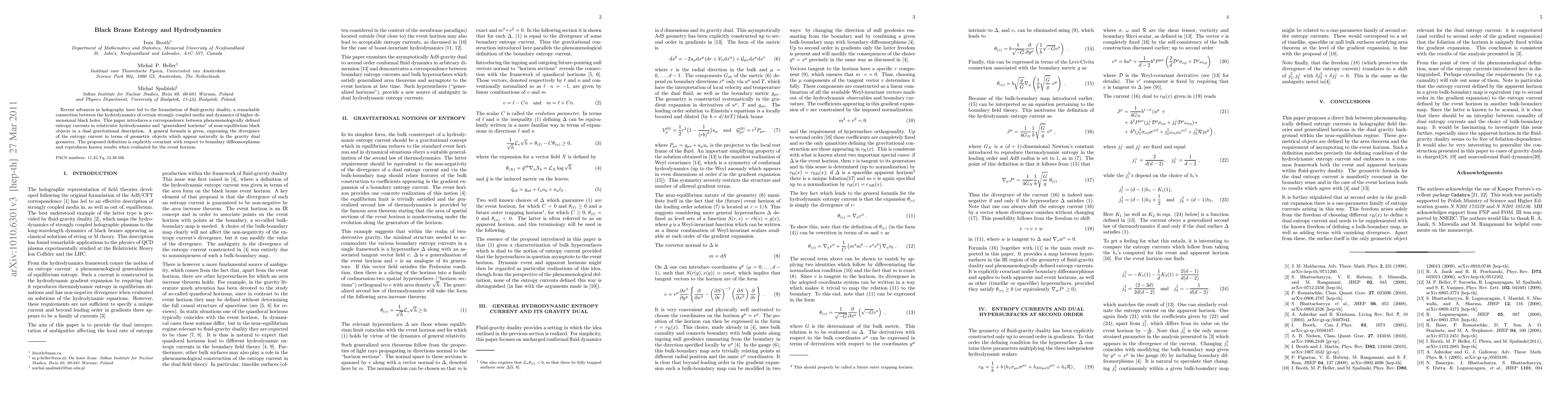 A generalization of entropy to near-equilibrium phenomena is provided by the notion of a hydrodynamic entropy current. Recent advances in holography have lead to the formulation of fluid-gravity duality, a remarkable connection between the hydrodynamics of certain strongly coupled media and dynamics of higher dimensional black holes. This Letter introduces a correspondence between phenomenologically defined entropy currents in relativistic hydrodynamics and quasilocal horizons of near-equilibrium black objects in a dual gravitational description. A general formula is given, expressing the divergence of the entropy current in terms of geometric objects which appear naturally in the gravity dual geometry. The proposed definition is explicitly covariant with respect to boundary diffeomorphisms and reproduces known results when evaluated for the event horizon.