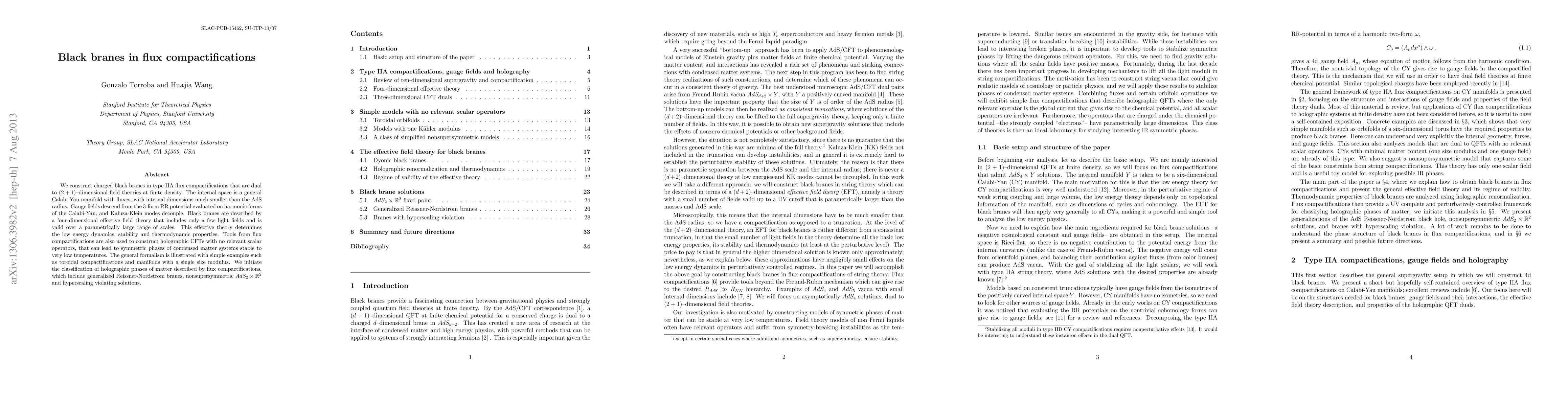 This paper constructs charged black branes in type IIA flux compactifications, showing they are dual to (2+1)-dimensional field theories at finite density. The effective field theory describes the low-energy dynamics and thermodynamic properties, and includes holographic CFTs with stable symmetric phases for condensed matter systems.