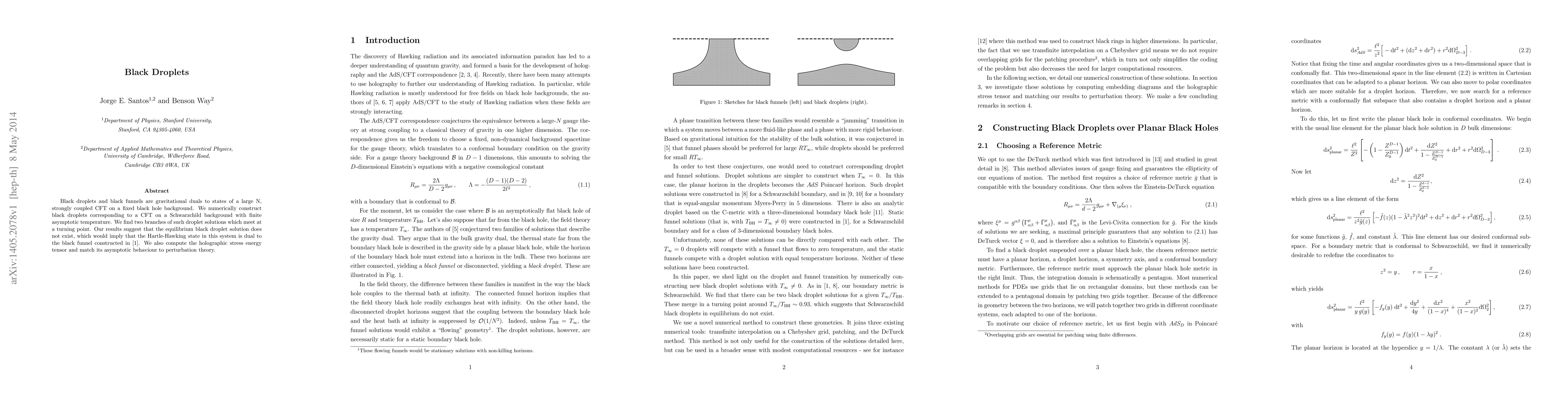 Black droplets and black funnels are gravitational duals to states of a large N, strongly coupled CFT on a fixed black hole background. We numerically construct black droplets corresponding to a CFT on a Schwarzchild background with finite asymptotic temperature. We find two branches of such droplet solutions which meet at a turning point. Our results suggest that the equilibrium black droplet solution does not exist, which would imply that the Hartle-Hawking state in this system is dual to the black funnel constructed in \cite{Santos:2012he}. We also compute the holographic stress energy tensor and match its asymptotic behaviour to perturbation theory.