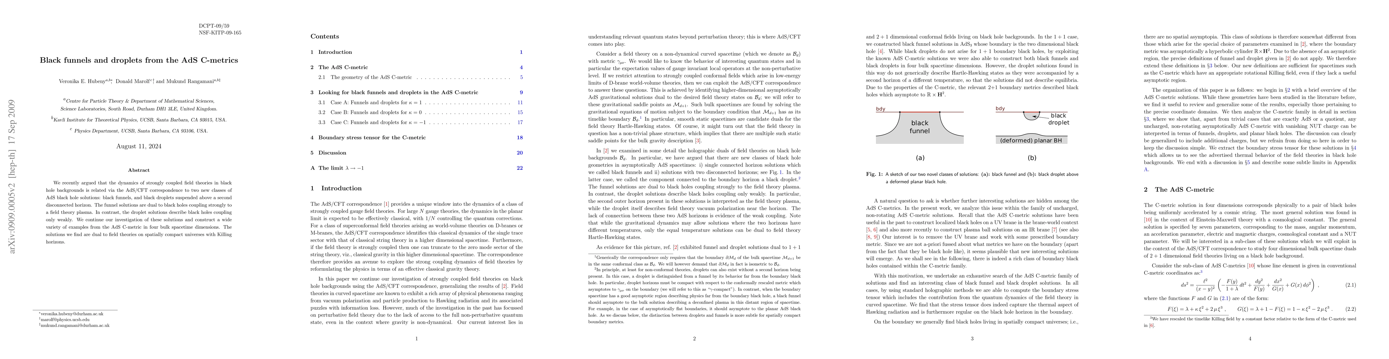 We recently argued that the dynamics of strongly coupled field theories in black hole backgrounds is related via the AdS/CFT correspondence to two new classes of AdS black hole solutions: black funnels, and black droplets suspended above a second disconnected horizon. The funnel solutions are dual to black holes coupling strongly to a field theory plasma. In contrast, the droplet solutions describe black holes coupling only weakly. We continue our investigation of these solutions and construct a wide variety of examples from the AdS C-metric in four bulk spacetime dimensions. The solutions we find are dual to field theories on spatially compact universes with Killing horizons.