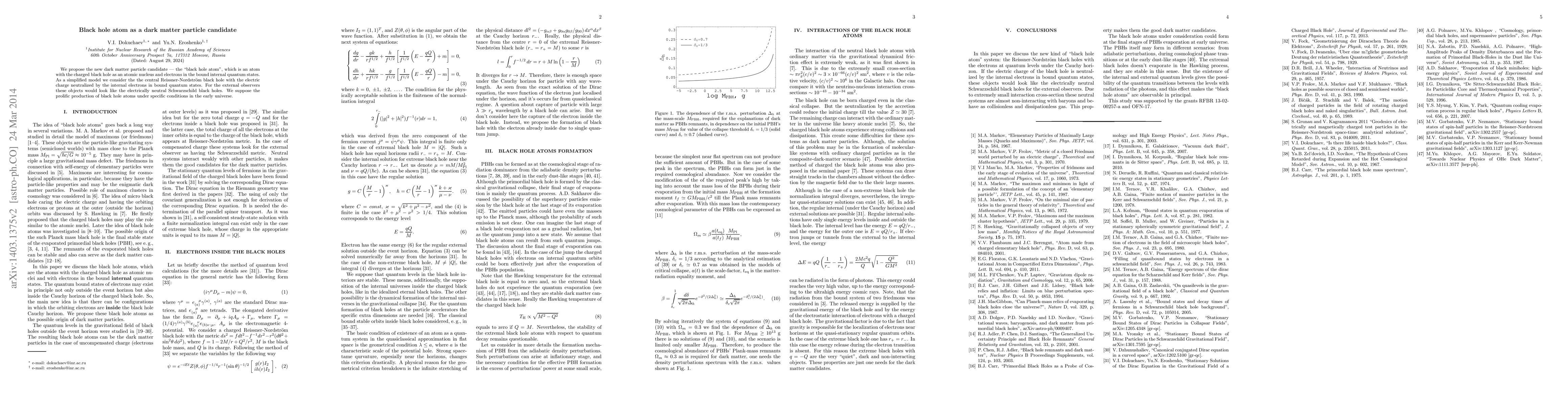 We propose the new dark matter particle candidate - the "black hole atom", which is an atom with the charged black hole as an atomic nucleus and electrons in the bound internal quantum states. As a simplified model we consider the the central Reissner-Nordstrom black hole with the electric charge neutralized by the internal electrons in bound quantum states. For the external observers these objects would look like the electrically neutral Schwarzschild black holes. We suppose the prolific production of black hole atoms under specific conditions in the early universe.