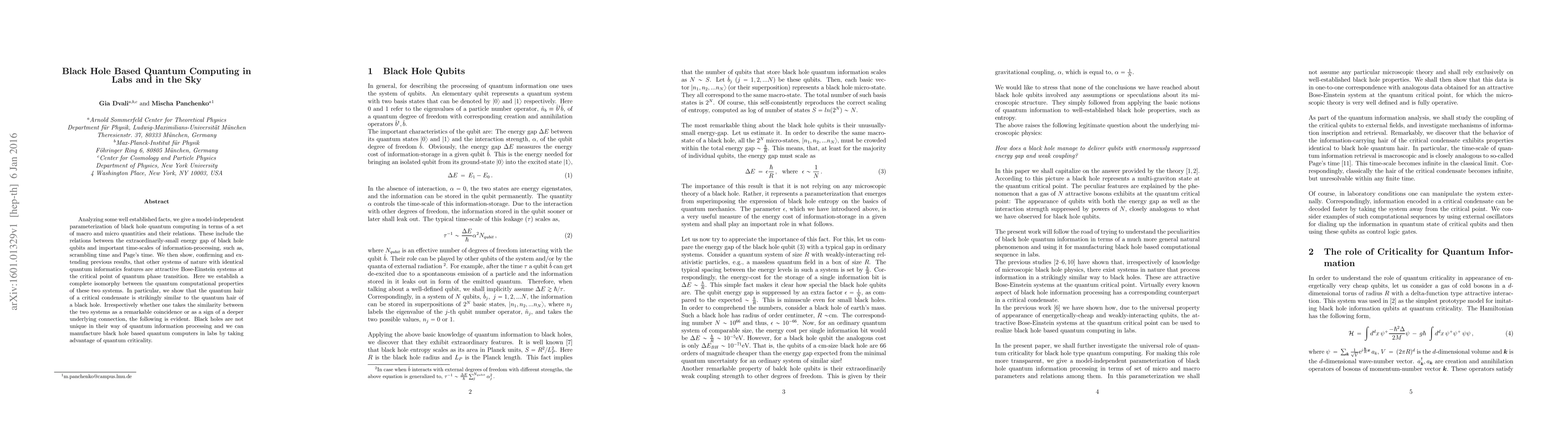 Researchers find that black holes can be used to create quantum computers in labs by leveraging the unique properties of critical condensates, similar to those found in Bose-Einstein systems.