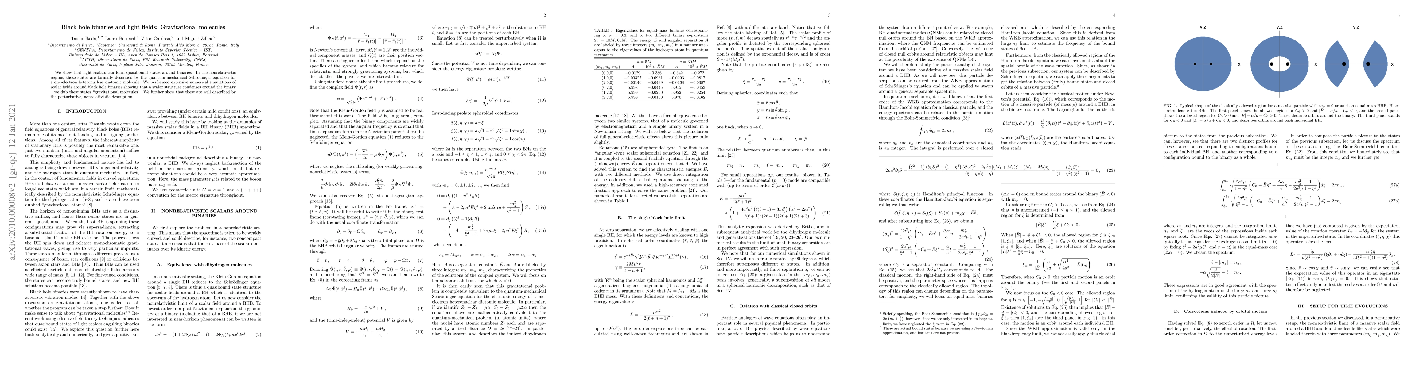 The research demonstrates that light scalars can form 'gravitational molecules' around black hole binaries, described by a nonrelativistic quantum mechanical Schrodinger equation. Numerical simulations confirm the formation of these scalar structures, which condense around the binary, validating the perturbative, nonrelativistic description.