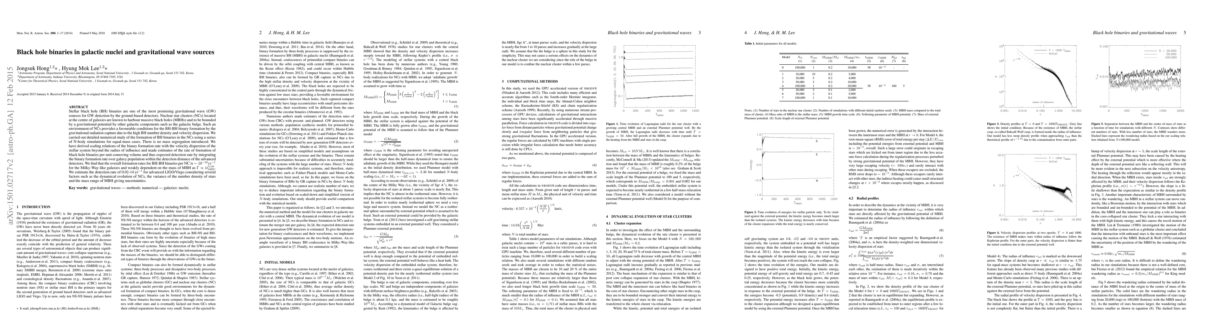 This paper investigates the formation of stellar black hole binaries in nuclear star clusters using N-body simulations, finding that the overall formation rate is 10^(-10)/yr for Milky-Way-like galaxies. The study estimates a detection rate of 0.02-14/yr for advanced LIGO/Virgo, considering various factors affecting the binary formation and detection.