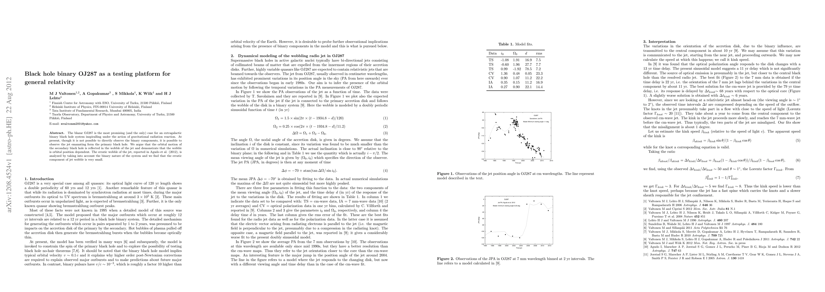 The blazar OJ287 is the most promising (and the only) case for an extragalactic binary black hole system inspiralling under the action of gravitational radiation reaction. At present, though it is not possible to directly observe the binary components, it is possible to observe the jet emanating form the primary black hole. We argue that the orbital motion of the secondary black hole is reflected in the wobble of the jet and demonstrate that the wobble is orbital position dependent. The erratic wobble of the jet, reported in Agudo et al. (2012), is analyzed by taking into account the binary nature of the system and we find that the erratic component of jet wobble is very small.