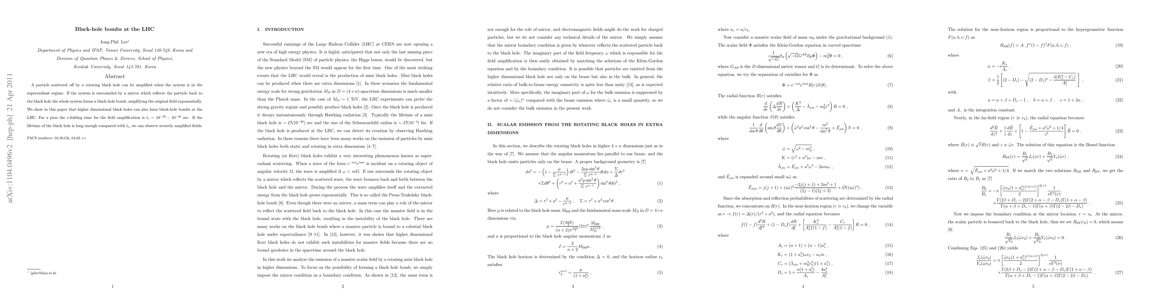 This paper explores the concept of 'black-hole bombs' at the Large Hadron Collider (LHC), demonstrating that higher dimensional black holes can create exponentially amplified fields using reflected particles. For pions, this amplification occurs within a very short timescale of 10^-23 to 10^-24 seconds, potentially making these amplified fields observable if the black hole's lifetime is sufficiently long.