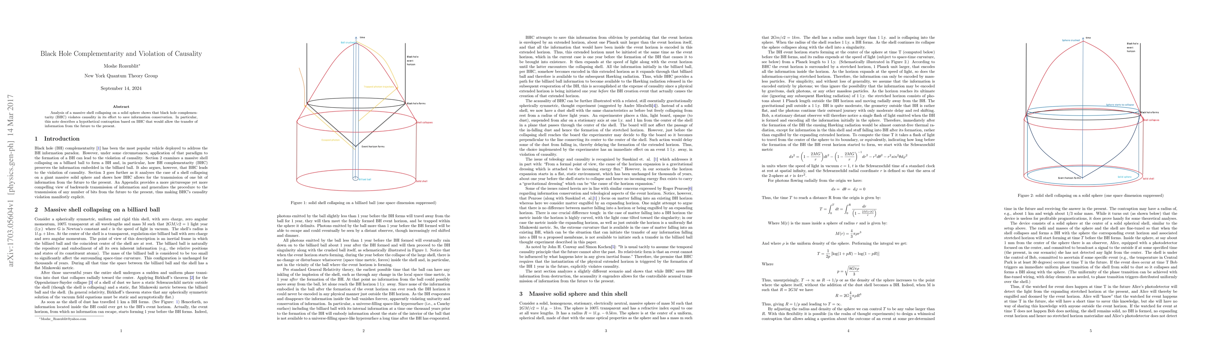 Analysis of a massive shell collapsing on a solid sphere shows that black hole complementarity (BHC) violates causality in its effort to save information conservation. In particular, this note describes a hypothetical contraption based on BHC that would allow the transfer of information from the future to the present.