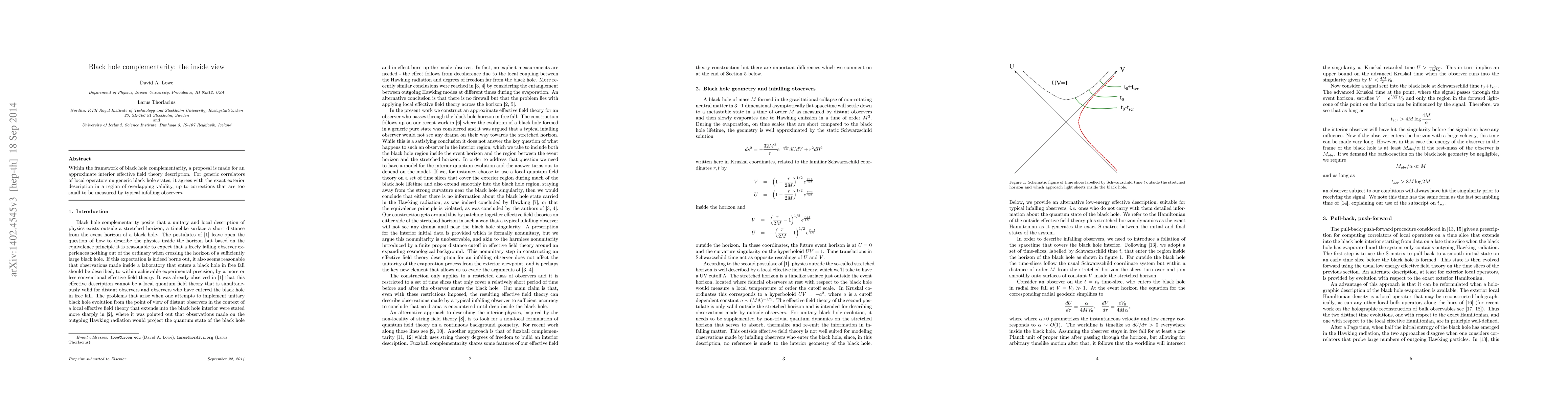 Black hole complementarity suggests an approximate effective field theory for the black hole interior that aligns with the exact exterior description in an overlapping region, with negligible differences undetectable by typical infalling observers. This approach maintains consistency between interior and exterior black hole observations.