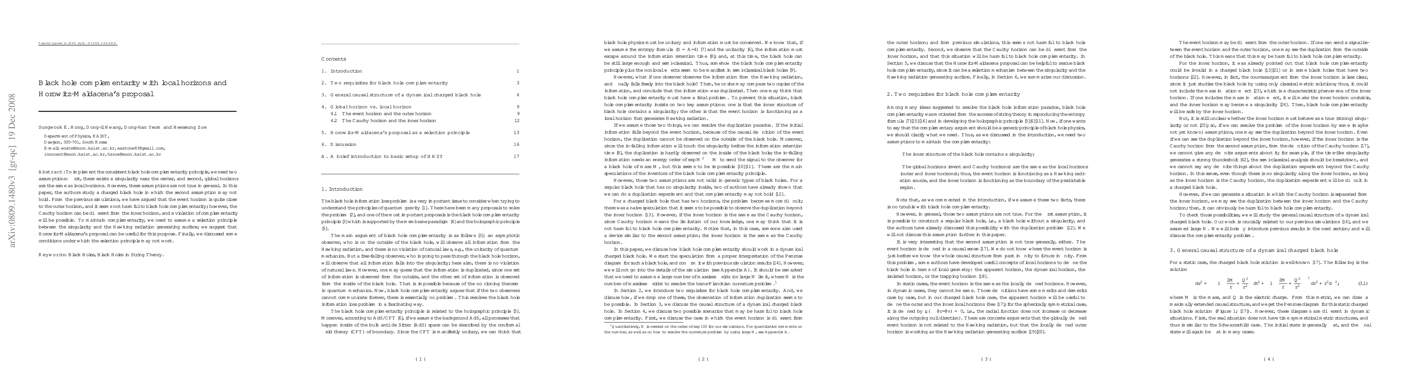 To implement the consistent black hole complementarity principle, we need two assumptions: first, there exists a singularity near the center, and second, global horizons are the same as local horizons. However, these assumptions are not true in general. In this paper, the authors study a charged black hole in which the second assumption may not hold. From the previous simulations, we have argued that the event horizon is quite close to the outer horizon, and it seems not harmful to black hole complementarity; however, the Cauchy horizon can be different from the inner horizon, and a violation of complementarity will be possible. To maintain complementarity, we need to assume a selection principle between the singularity and the Hawking radiation generating surface; we suggest that Horowitz-Maldacena's proposal can be useful for this purpose. Finally, we discussed some conditions under which the selection principle may not work.