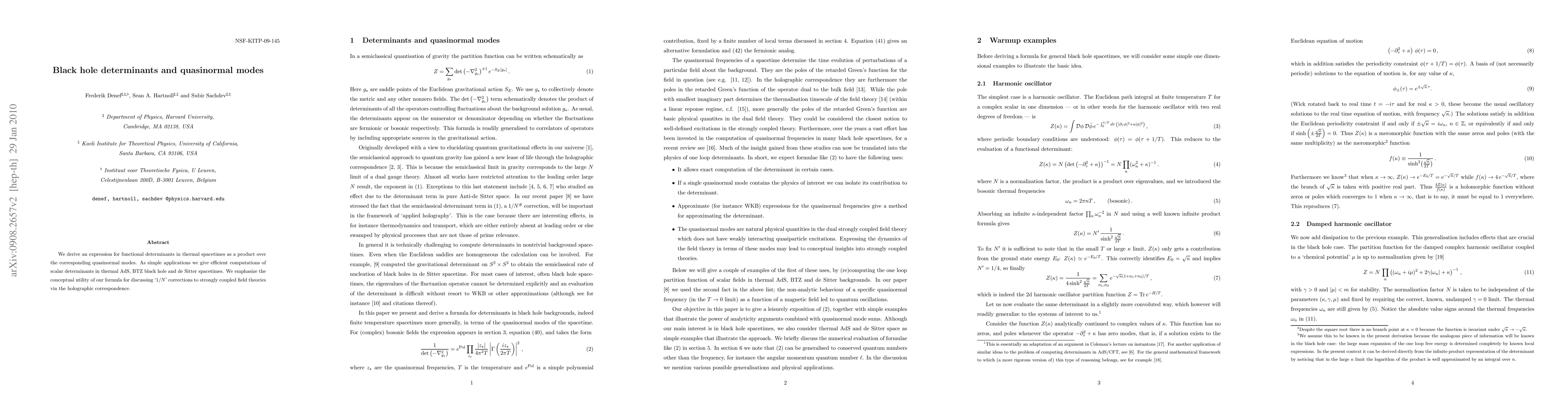 This paper derives an expression for functional determinants in thermal spacetimes as a product over quasinormal modes, applying it to compute scalar determinants in thermal AdS, BTZ black hole, and de Sitter spacetimes, and highlights the utility of the formula for discussing '1/N' corrections in strongly coupled field theories via holographic correspondence.