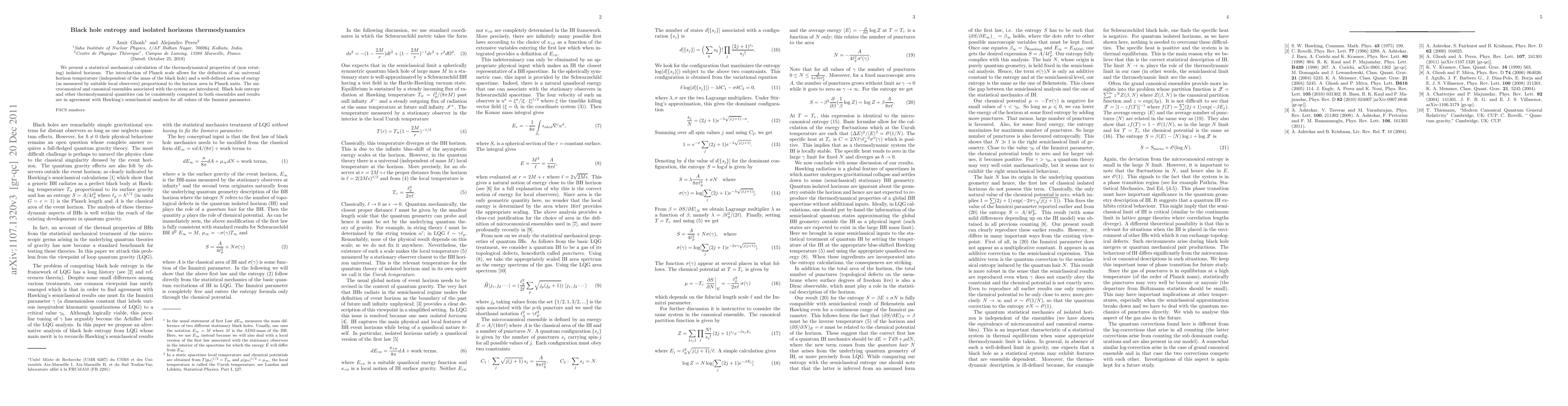 This paper calculates the thermodynamic properties of non-rotating isolated horizons using statistical mechanics, defining a universal horizon temperature and energy proportional to the horizon area. Both microcanonical and canonical ensembles are used to compute black hole entropy, yielding results consistent with Hawking's semiclassical analysis.