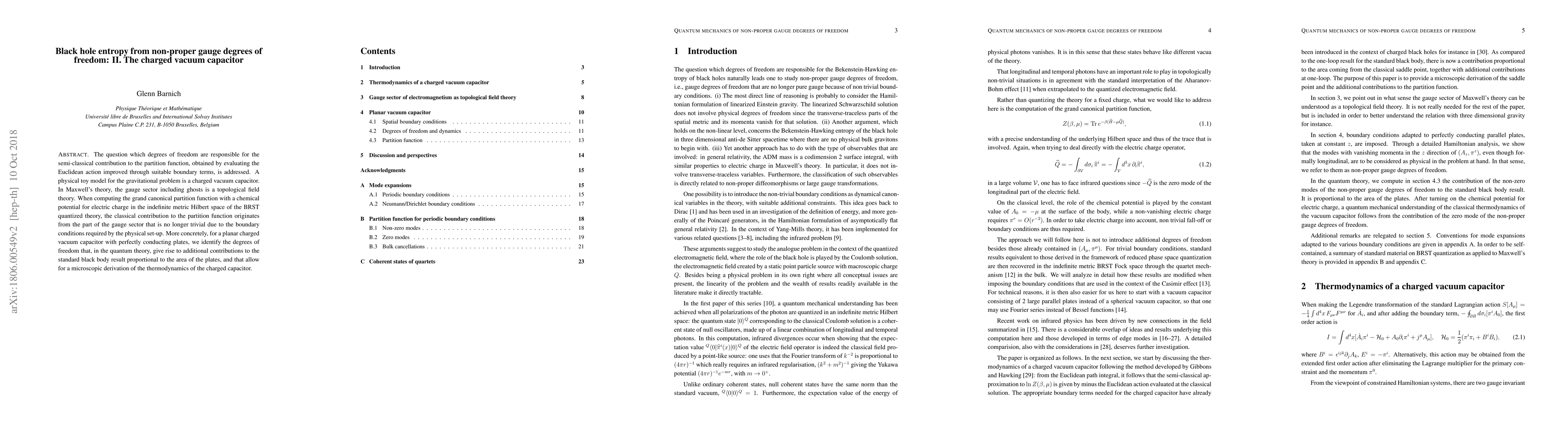Researchers explore a charged vacuum capacitor as a model to understand the classical part of black hole entropy in physics, finding that specific gauge degrees of freedom contribute to additional thermodynamic behavior.