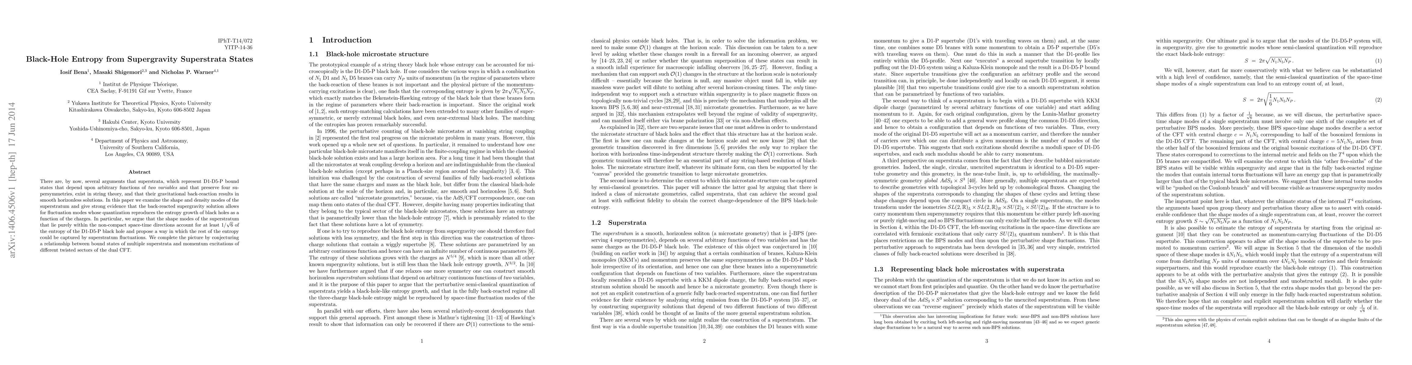 There are, by now, several arguments that superstrata, which represent D1-D5-P bound states that depend upon arbitrary functions of two variables and that preserve four supersymmetries, exist in string theory, and that their gravitational back-reaction results in smooth horizonless solutions. In this paper we examine the shape and density modes of the superstratum and give strong evidence that the back-reacted supergravity solution allows for fluctuation modes whose quantization reproduces the entropy growth of black holes as a function of the charges. In particular, we argue that the shape modes of the superstratum that lie purely within the non-compact space-time directions account for at least $1/\sqrt{6}$ of the entropy of the D1-D5-P black hole and propose a way in which the rest of the entropy could be captured by superstratum fluctuations. We complete the picture by conjecturing a relationship between bound states of multiple superstrata and momentum excitations of different twisted sectors of the dual CFT.