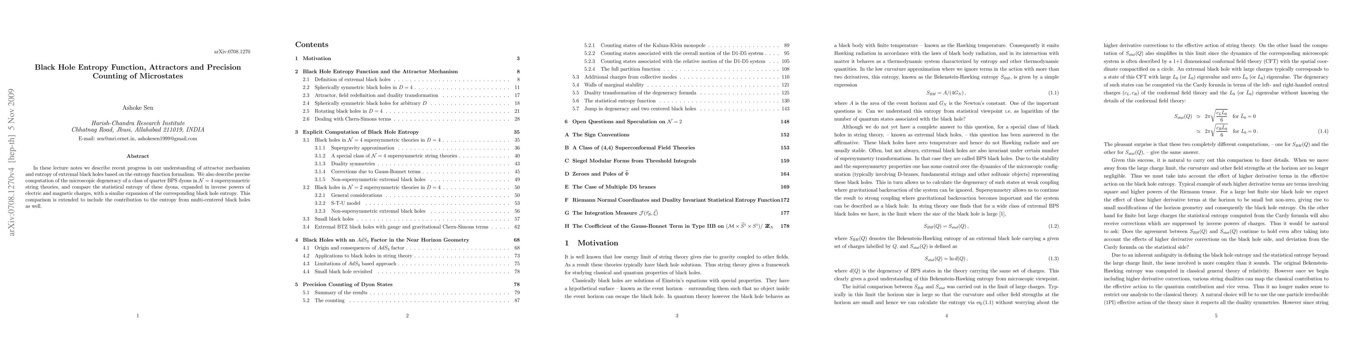 This paper discusses advancements in understanding the attractor mechanism and entropy of extremal black holes using entropy function formalism. It also presents precise calculations of the microscopic degeneracy of quarter BPS dyons in N=4 supersymmetric string theories and compares their statistical entropy with that of corresponding black holes, including multi-centered black holes.