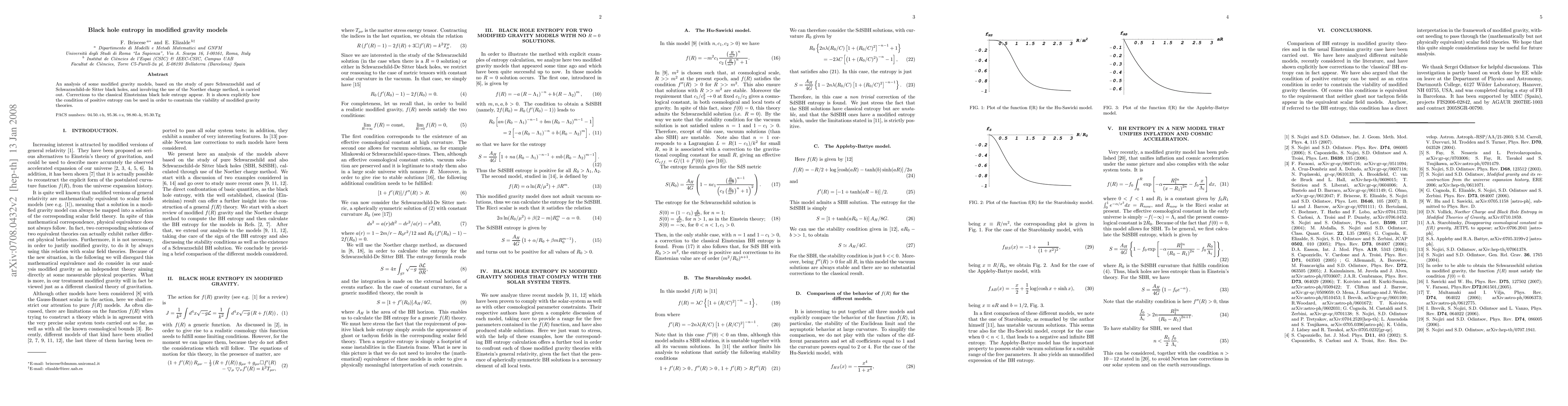 An analysis of some modified gravity models, based on the study of pure Schwarzschild and of Schwarzschild-de Sitter black holes, and involving the use of the Noether charge method, is carried out. Corrections to the classical Einsteinian black hole entropy appear. It is shown explicitly how the condition of positive entropy can be used in order to constrain the viability of modified gravity theories.