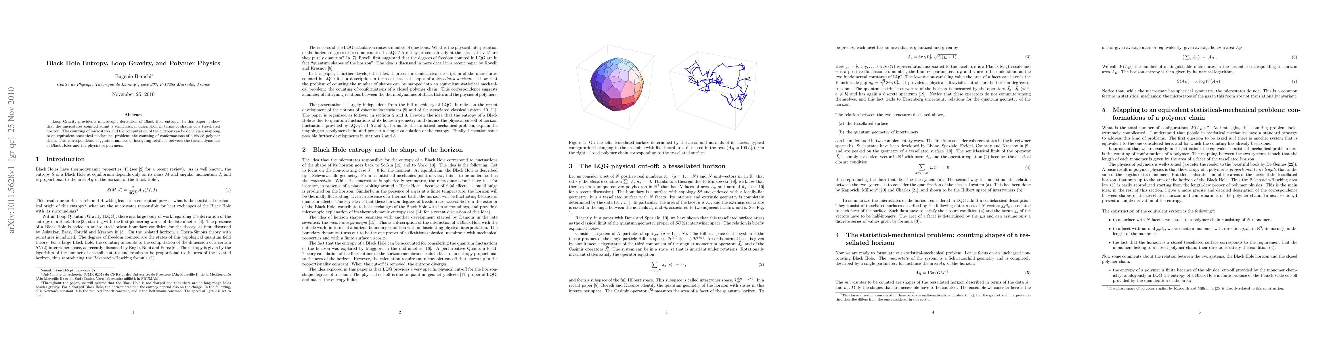 This paper demonstrates that Loop Gravity's microscopic model of black hole entropy can be mapped to a statistical mechanical problem of closed polymer chain conformations, revealing deep connections between black hole thermodynamics and polymer physics.
