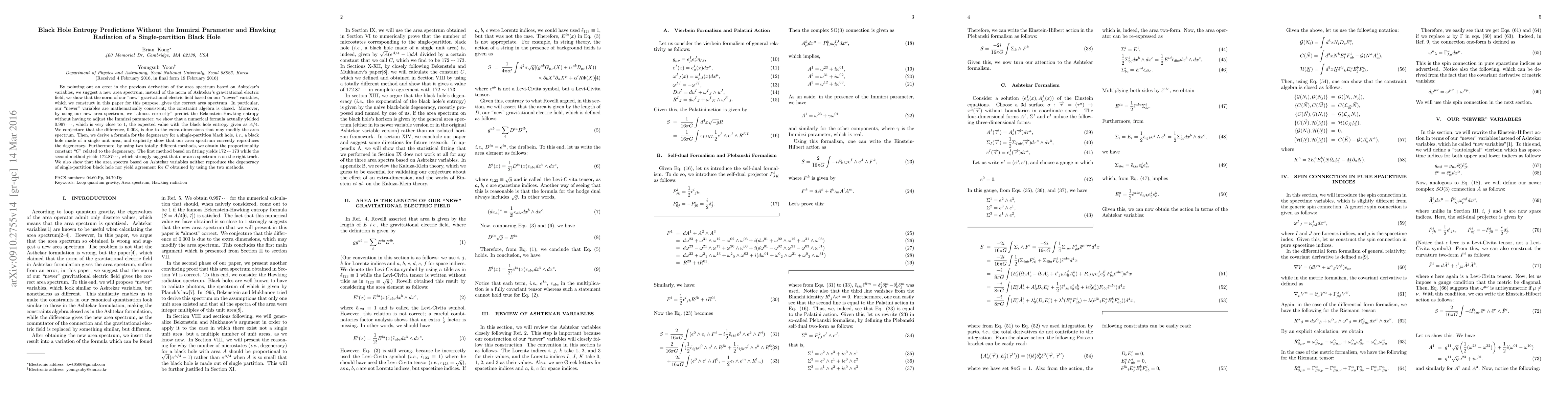 By pointing out an error in the previous derivation of the area spectrum based on Ashtekar's variables, we suggest a new area spectrum; instead of the norm of Ashtekar's gravitational electric field, we show that the norm of our "new" gravitational electric field based on our "newer" variables, which we construct in this paper for this purpose, gives the correct area spectrum. In particular, our "newer" variables are mathematically consistent; the constraint algebra is closed. Moreover, by using our new area spectrum, we "almost correctly" predict the Bekenstein-Hawking entropy without having to adjust the Immirzi parameter; we show that a numerical formula actually yielded $0.997\cdots$, which is very close to 1, the expected value with the black hole entropy given as $A/4$. We conjecture that the difference, 0.003, is due to the extra dimensions that may modify the area spectrum. Then, we derive a formula for the degeneracy for a single-partition black hole, i.e., a black hole made of a single unit area, and explicitly show that our area spectrum correctly reproduces the degeneracy. Furthermore, by using two totally different methods, we obtain the proportionality constant "$C$" related to the degeneracy. The first method based on fitting yields 172$\sim$173 while the second method yields 172.87$\cdots$, which strongly suggest that our area spectrum is on the right track. We also show that the area spectra based on Ashtekar variables neither reproduce the degeneracy of single-partition black hole nor yield agreement for $C$ obtained by using the two methods.